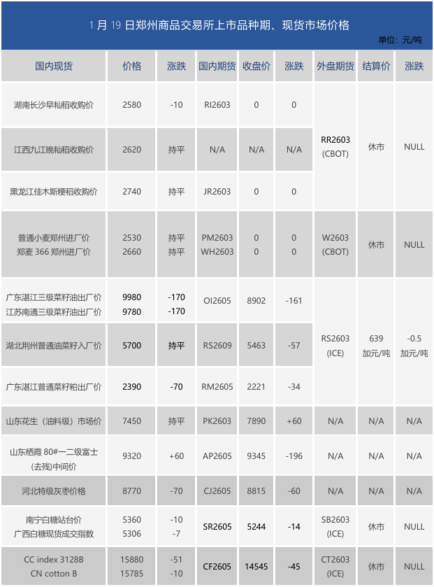 易盛每日传真2026年1月20日